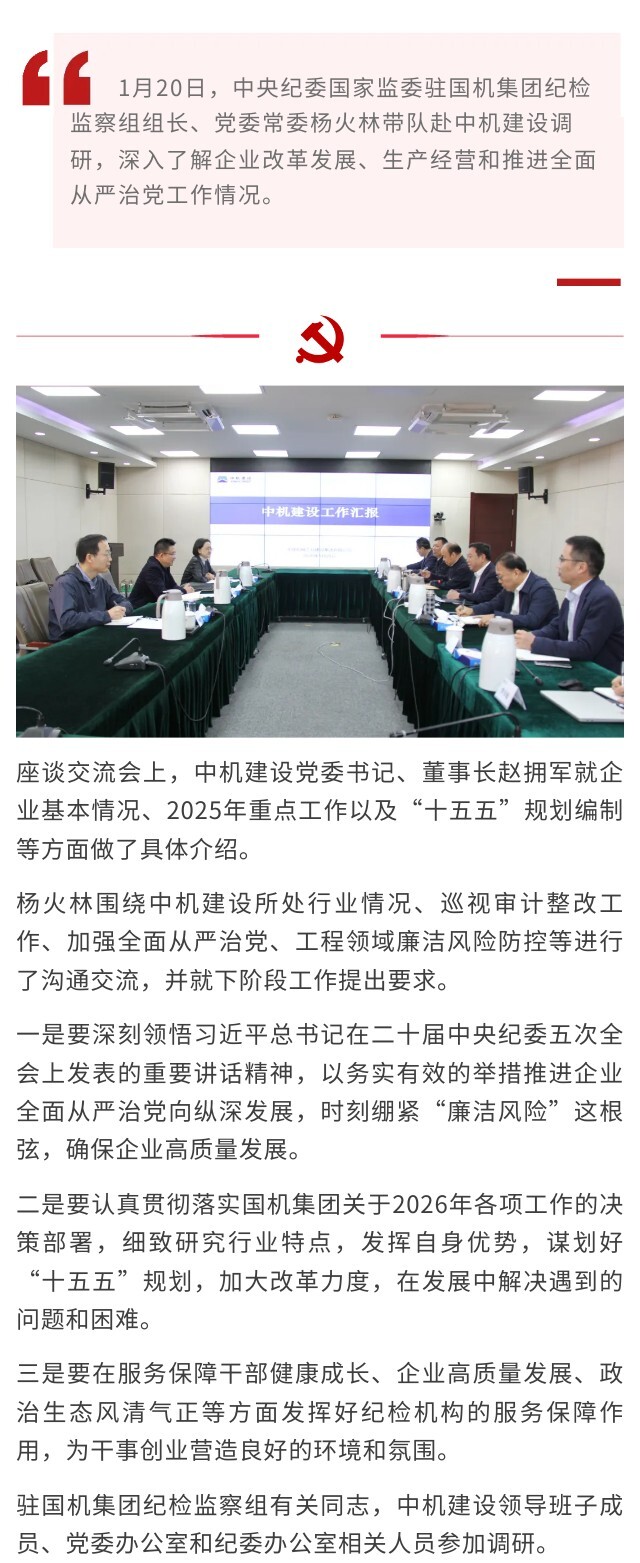 中央纪委国家监委驻国机集团纪检监察组组长、党委常委杨火林调研中机建设