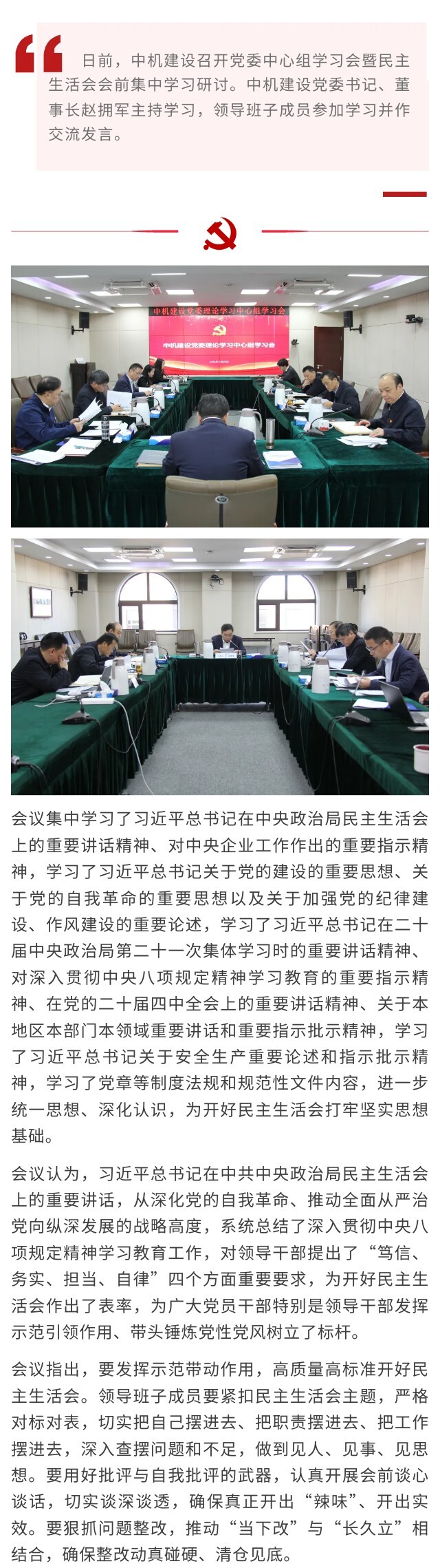 中机建设召开党委中心组学习会暨民主生活会会前集中学习